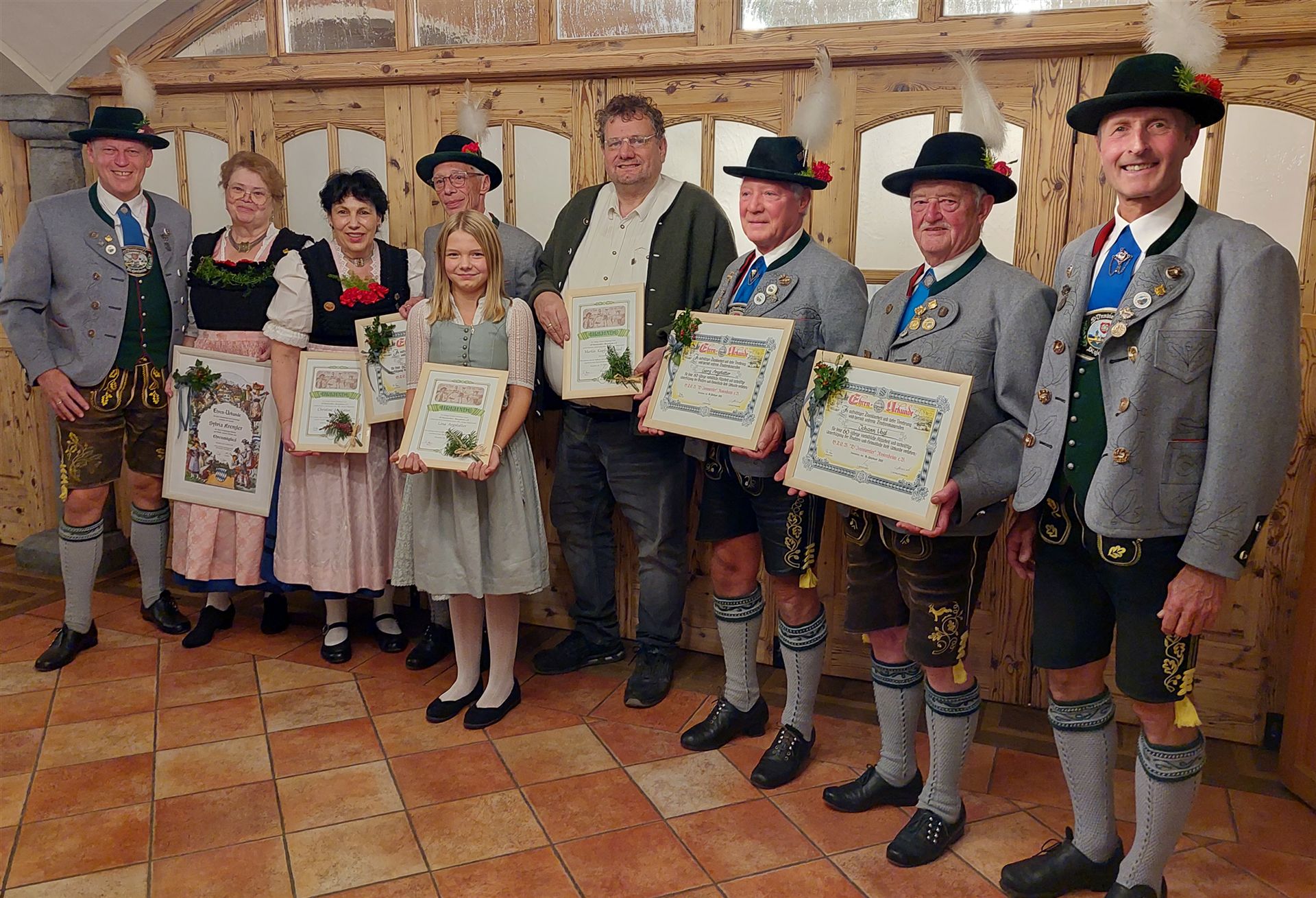 Das obenstehende Foto zeigt die geehrten Mitglieder vom Trachtenverein "D´Innviertler“ Rosenheim. Von links nach rechts Christine und Peter Feldschmidt, Franz Moser, jun., Waldtraud Schmidmayer, Wolfgang Staudhammer, Wilfried Abtmeier, Erika Licht, Peter Weinzierl, Sebastian Krznaric, Edda Schwaiger, Hans Partenhauser, Inge Argstatter, Franz Weinzierl, Astrid Reichel, Selina Pathekas, 2. Vorsitzender Christian Hübl, Gini Hübl.