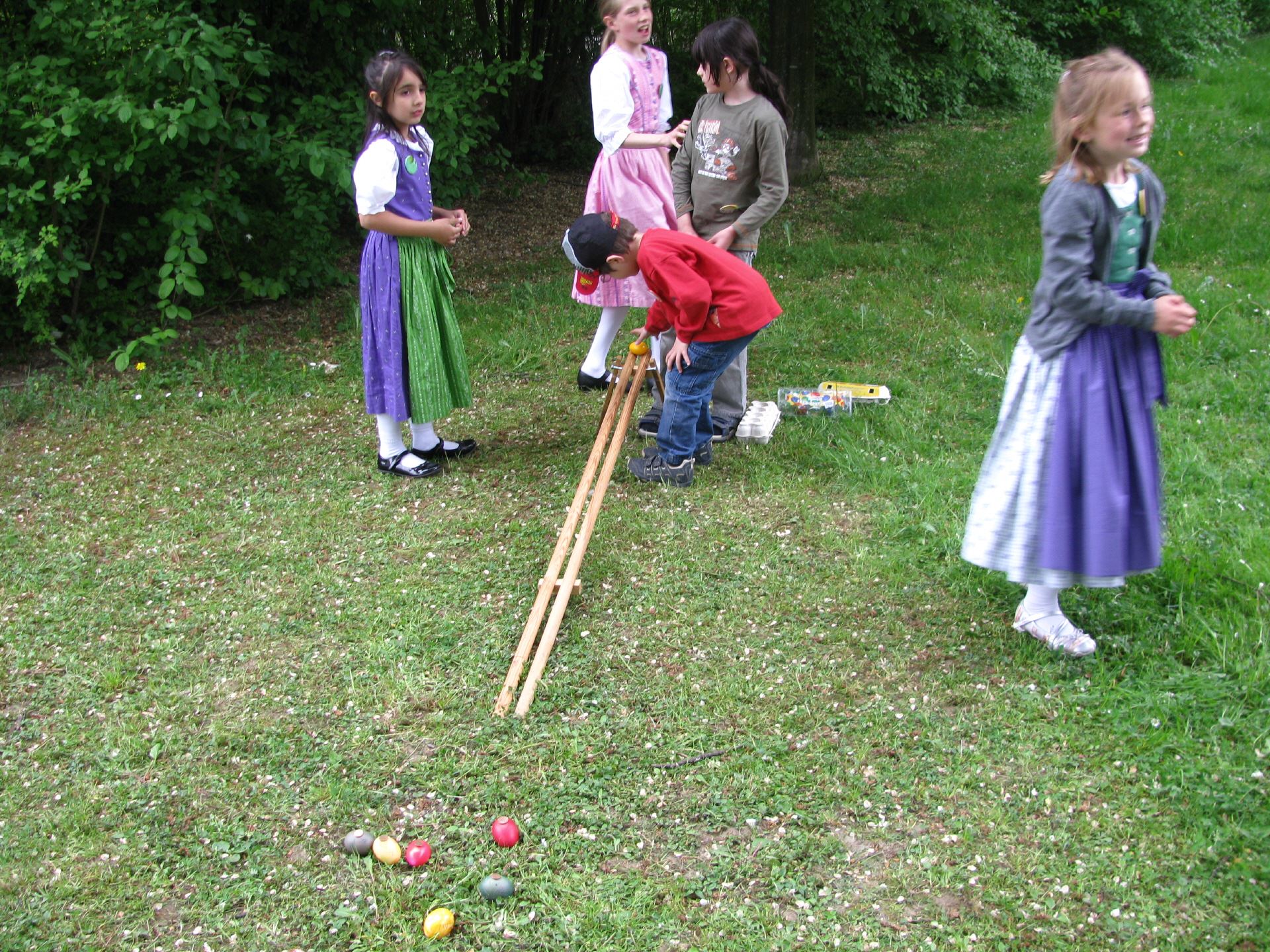 Auffallend hoch war heuer der Anteil der insgesamt rund 50 Kinder, die das Osterferien-Angebot des Rosenheimer Trachtenvereins "D" Innviertler" nutzten und unaufgefordert im sauberen Trachtengewand erschienen. Erfreut stellte Vorstand Georg Argstatter fest: "Es ist ein gutes Zeichen, dass in Kindergärten und Schulen endlich wieder mehr Wert auf die bayerische Sprache und die regionale Identität überhaupt gelegt wird." Er werte dies auch als einen Verdienst der kontinuierlichen Arbeit der bayerischen Trachtenvereine. Dass dies keineswegs rückwärts gewandt, sondern durchaus auch zeitgemäß und pfiffig den jungen Dirndln und Buam vermittelt werden kann, stellten Gertraud und Sepp Gotzlirsch unter Beweis. Mit lustigen, kindgerechten Spielen, Tänzen und Liedern, begleitet von Leonhard Wimmer auf der Zither, zogen sie die eifrige Teilnehmerschar in ihren Bann. Stärkung gab es bei selbst gebackenen Kuchen, ehe die gelungene Veranstaltung mit dem "Oarscheibn" ihren Abschluss fand. Jugendleiterin Thea Haydn freute sich, dass es einigen Kindern offenbar so gut gefallen hat, dass sie künftig die Kindergruppe der "Innviertler" verstärken wollen. "Wir "Innviertler" planen gerade gemeinsam mit dem Trachtenverein "Alt Rosenheim" unser Jubiläum im Jahr 2013. Da freuen wir uns natürlich über jedes Kind, das in unserer Jugendgruppe mitmachen will. Wir treffen uns jeden Mittwoch von 17.45 Uhr bis 19.00 Uhr im Saal des Stadtjugendringes."