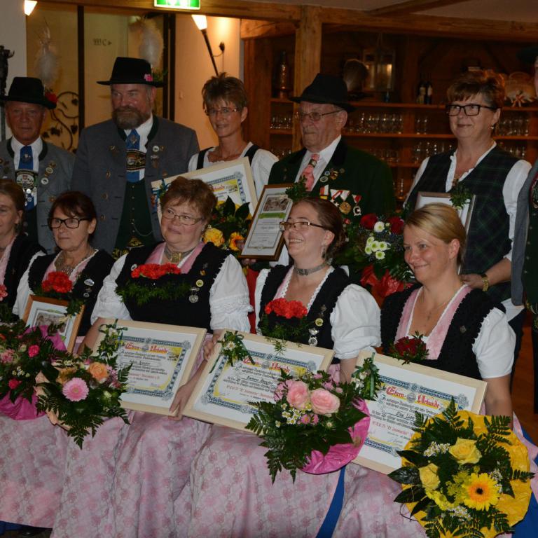 Als Höhepunkt des Abends konnte Gauvorstand Schorsch Schinnagl Schriftführerin Sylvia Krenzler für ihren mehr als 20jährigen Einsatz als 2. Jugendleiterin und Schriftführerin das "Silberne Gauehrenzeichen des Bayerischen Inngau Trachtenverbandes" überreichen. Alle Jubilare erhielten ihre Ehrentänze, und Vorstand Argstatter ermutigte sie, auch in Zukunft weiter treu zum Verein zu stehen und das Vereinsleben aktiv mit zu gestalten.